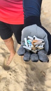 No dia 30 de agosto de 2025, foi realizada uma ação de limpeza de praia com o objetivo de conscientizar a população sobre o descarte incorreto de guimbas de cigarro. Durante a atividade, foram encontrados os mais diversos resíduos, com destaque para os plásticos e as guimbas. Todo o material recolhido foi exposto de forma visível, buscando sensibilizar as pessoas que frequentavam a praia e reforçar a importância da mudança de hábitos.