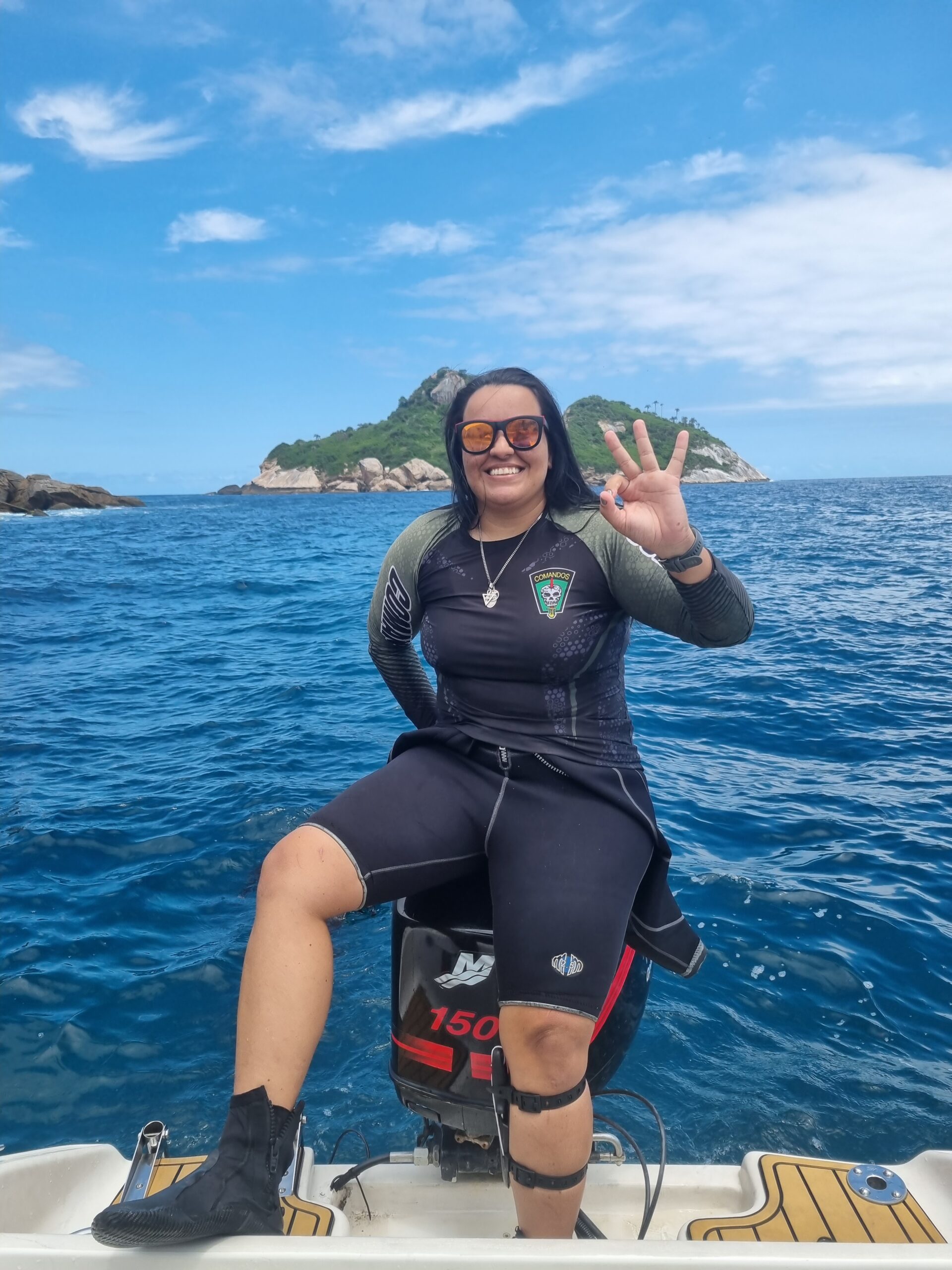 No mergulho recreativo, é Instrutora credenciada pela NAUI (National Association of Underwater Instructors), oferecendo mais de 22 especialidades e cursos de mergulho, levando seus alunos a explorarem o mundo subaquático com técnica, segurança e paixão.